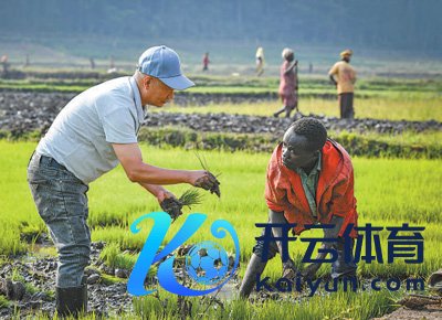 8月14日,在卢旺达南边省胡耶区的中国援卢旺达农业工夫示范中心,中国水稻大师请示当地稻农进行秧苗移栽。