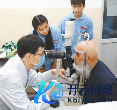 6月14日,“健康快车塔吉克斯坦光明行”行动现场,中方大夫正在为塔吉克斯坦患者进行搜检。