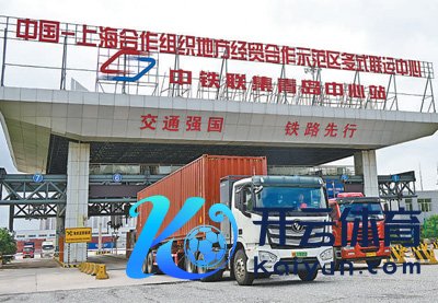 7月26日,运载集装箱的货车从中国—上海合作组织场所经贸合作示范区多式联运中心中铁联集青岛中心站驶出。