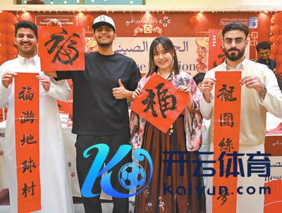 1月29日,沙特阿拉伯利雅得苏尔坦亲王大学孔子学院龙年春节行动上,该校学生展示中国书道作品。