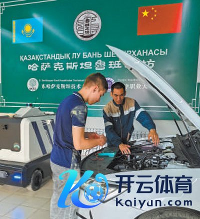 6月11日,当地学员在哈萨克斯坦首家鲁班工坊汽车维修工夫实训区实操锻真金不怕火。