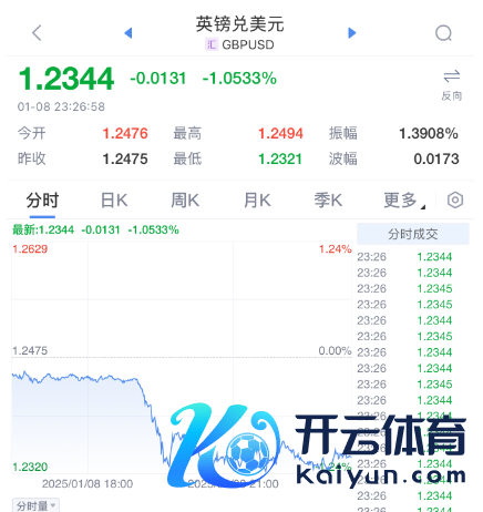 英镑汇率大跌超1%。