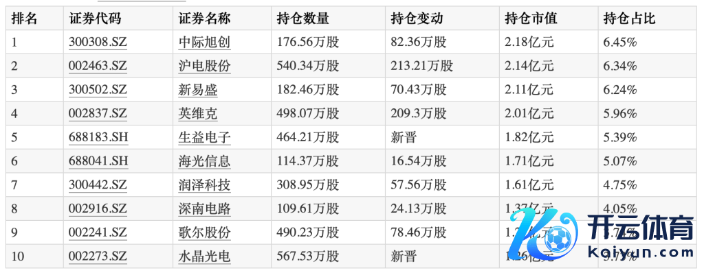 从具体的调仓信息来看,截止2024年12月31日,大摩数字经济羼杂的前十大重仓股分裂为中际旭创(300308)、沪电股份(002463)、新易盛(300502)、英维克(002837)、生益电子(688183)、海光信息(688041)、津润科技(300442)、深南电路(002916)、歌尔股份(002241)、水晶光电(002273),多为AI关系的算力及愚弄端产业链公司。